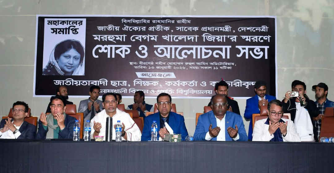 জাতীয় ঐক্যের প্রতীক, সাবেক প্রধানমন্ত্রী, বিএনপি চেয়ারপারসন, নোবিপ্রবি’র ভিত্তি প্রস্তর স্থাপনকারী ও একাডেমিক কার্যক্রমের উদ্বোধক মরহুমা বেগম খালেদা জিয়ার স্মরণে নোয়াখালী বিজ্ঞান ও প্রযুক্তি বিশ্ববিদ্যালয়ে (নোবিপ্রবি) শোক ও আলোচনা সভা অনুষ্ঠিত হয়েছে। আজ মঙ্গলবার (১৩ জানুয়ারি ২০২৬) সকালে বিশ্ববিদ্যালয়ের বীরশ্রেষ্ঠ শহিদ মোহাম্মদ রুহুল আমিন অডিটরিয়ামে এ সভা অনুষ্ঠিত হয়। নোবিপ্রবির জাতীয়তাবাদী ছাত্র, শিক্ষক, কর্মকর্তা ও কর্মচারীবৃন্দ এ সভার আয়োজন করে।