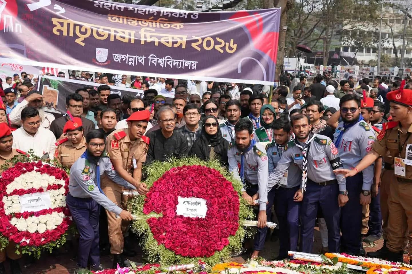 মহান শহীদ দিবস ও আন্তর্জাতিক মাতৃভাষা দিবস–২০২৬ উপলক্ষ্যে জগন্নাথ বিশ্ববিদ্যালয়-এর পক্ষ থেকে কেন্দ্রীয় শহীদ মিনারে পুষ্পার্ঘ্য অর্পণ করে ভাষা শহীদদের প্রতি গভীর শ্রদ্ধা নিবেদন করা হয়েছে।