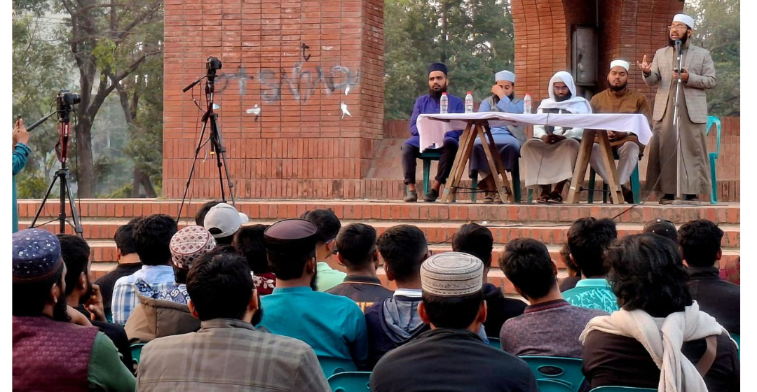 শনিবার (৭ ফেব্রুয়ারি) বিশ্ববিদ্যালয়ের কেন্দ্রীয় শহীদ মিনার প্রাঙ্গণে এই প্রতিবাদ সমাবেশ অনুষ্ঠিত হয়। জাহাঙ্গীরনগর বিশ্ববিদ্যালয় কুরআন ও কালচারাল স্টাডি ক্লাবের উদ্যোগে আয়োজিত এ কর্মসূচিতে সূরা আন-নাসের ভুল ব্যাখ্যা ও ব্যঙ্গাত্মক উপস্থাপনার বিরুদ্ধে প্রতিবাদ জানানো হয়।ক্লাবের সাধারণ সম্পাদক ওয়ালি উল্লাহ আল মাহাদীর সঞ্চালনায় বক্তারা সূরা নাস এর তাফসীর ও নাজিলের প্রেক্ষাপট বর্ণনা করেন।